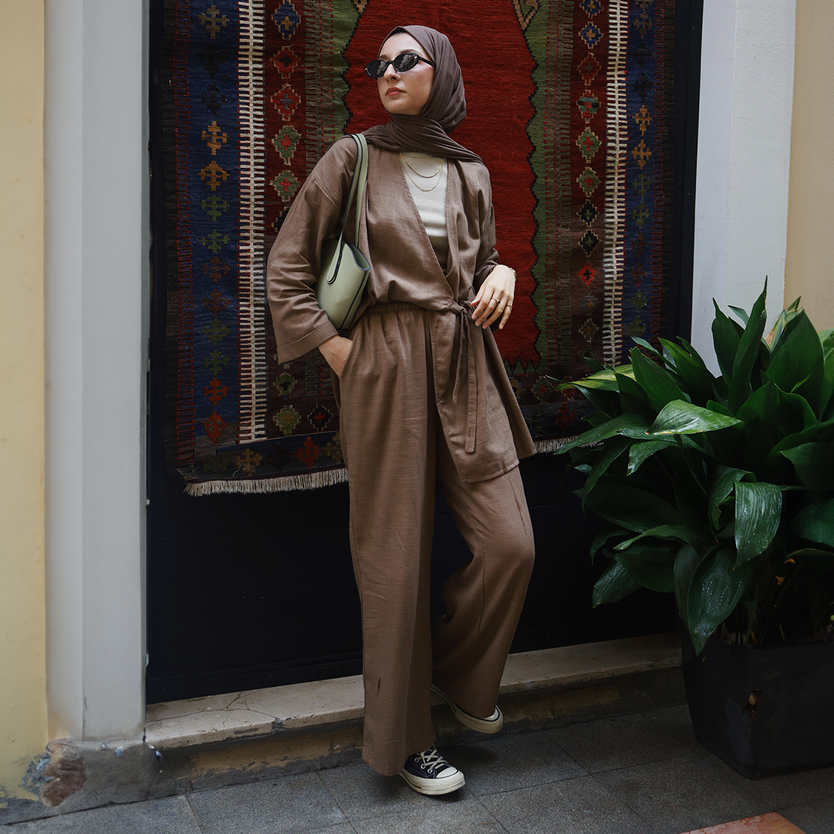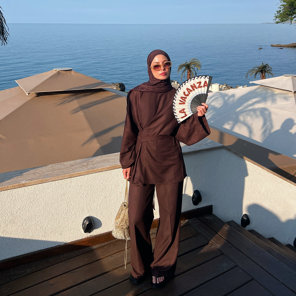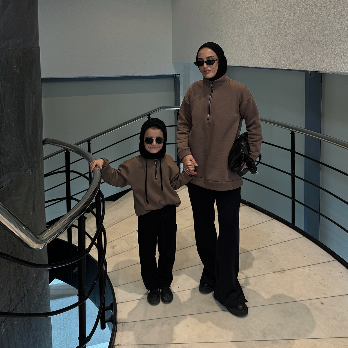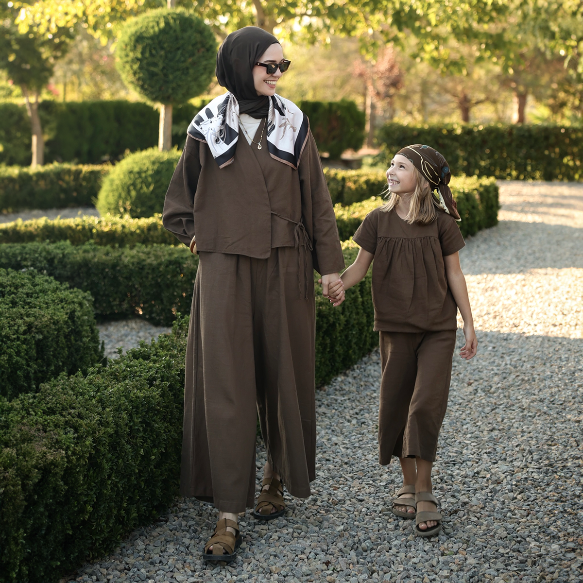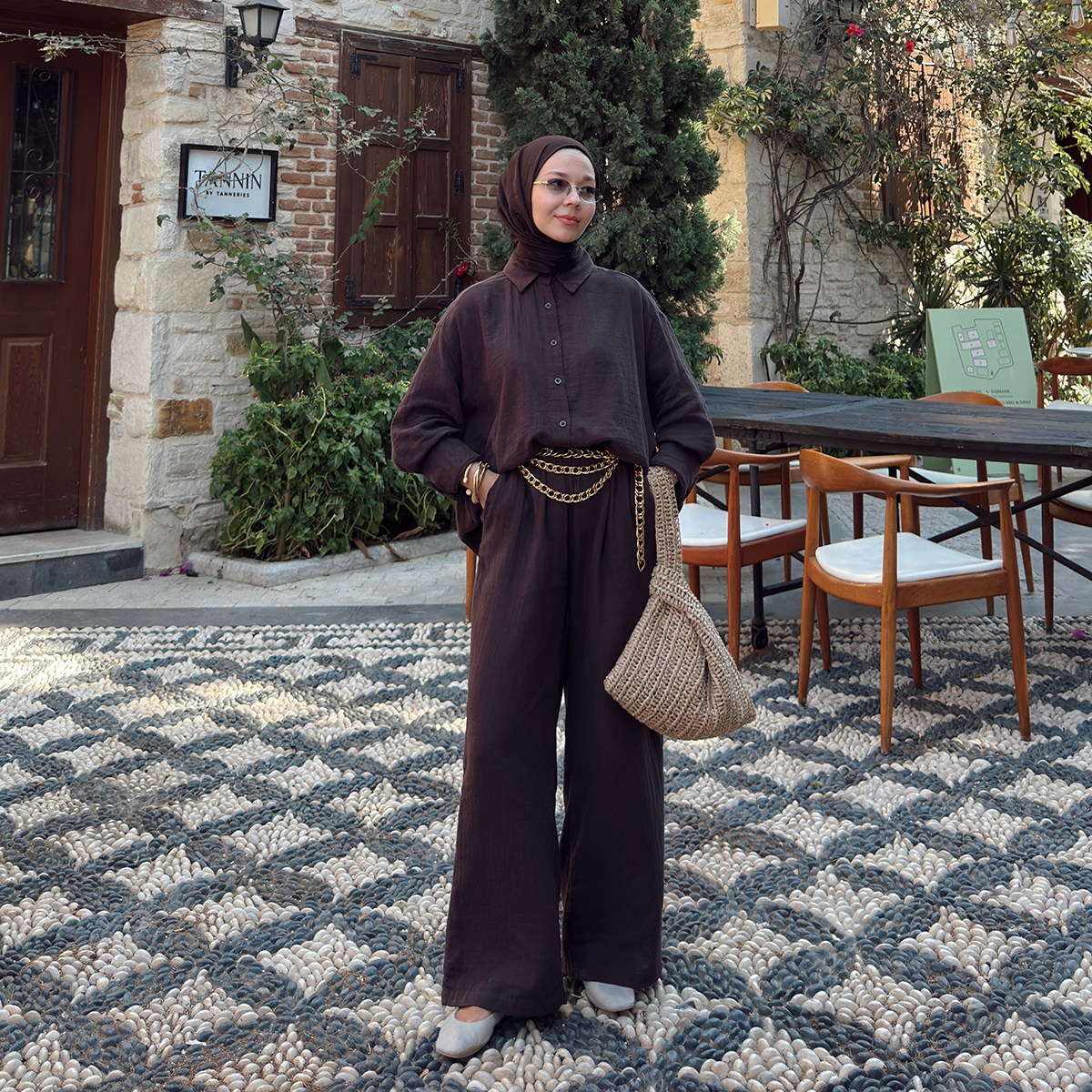 Kadın Poplin Gömlek Pantolon Takım Kahve