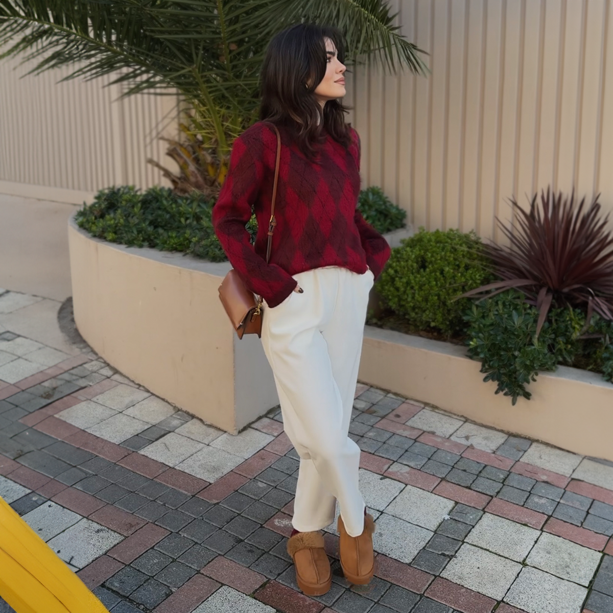 Kadın İnterlok Bol Paçalı Pantolon Füme
