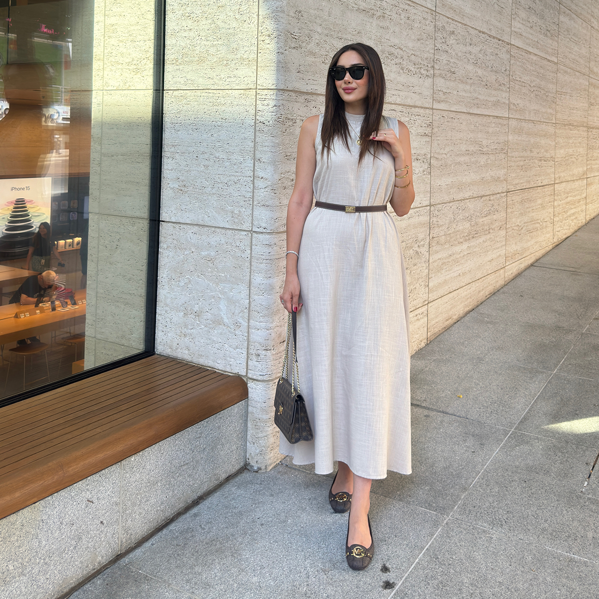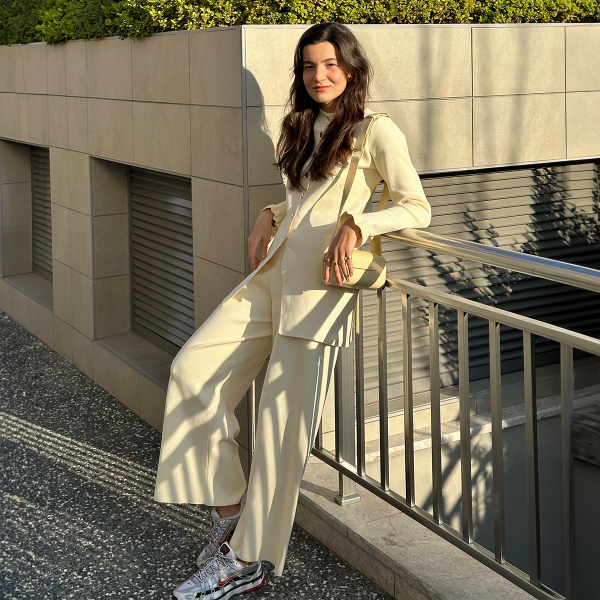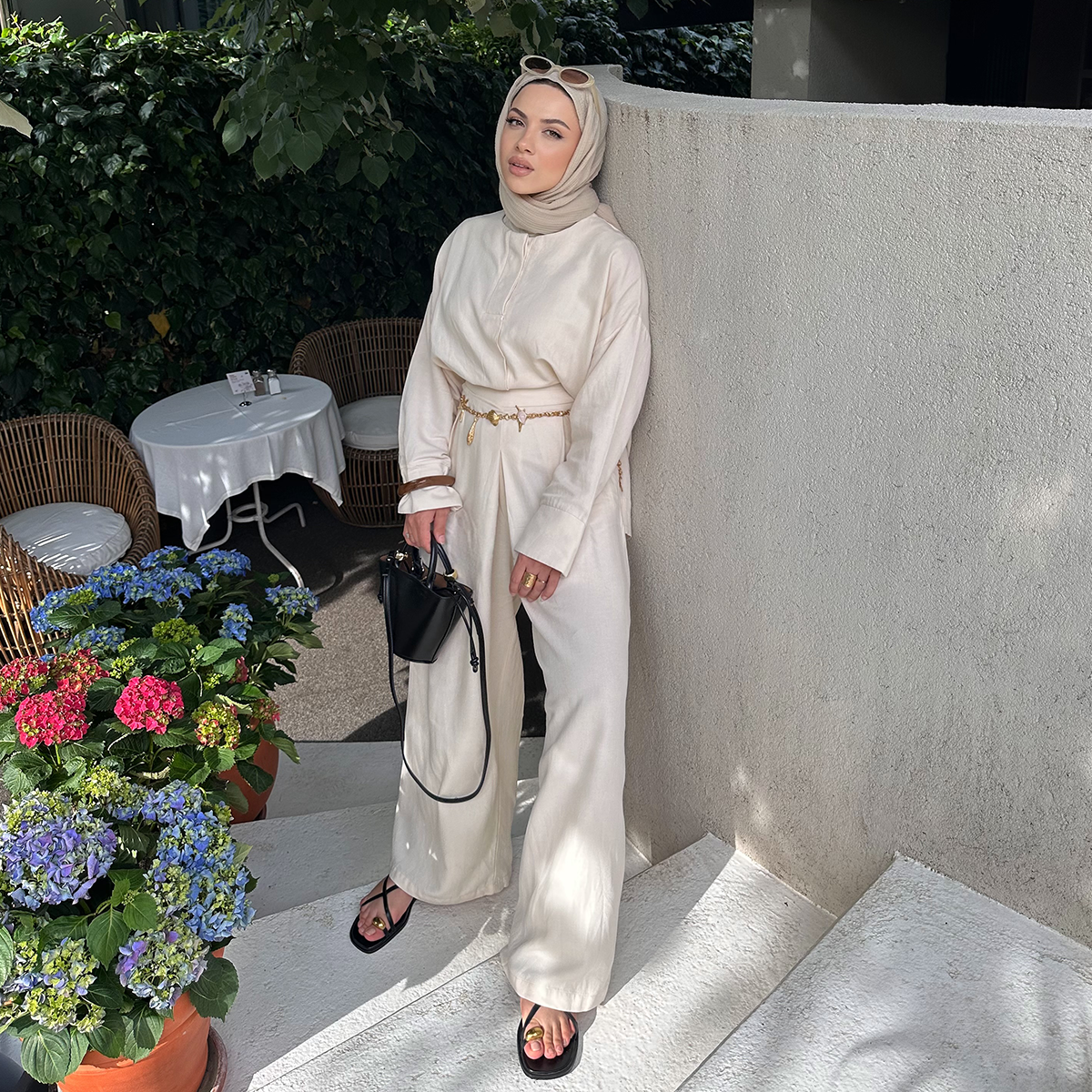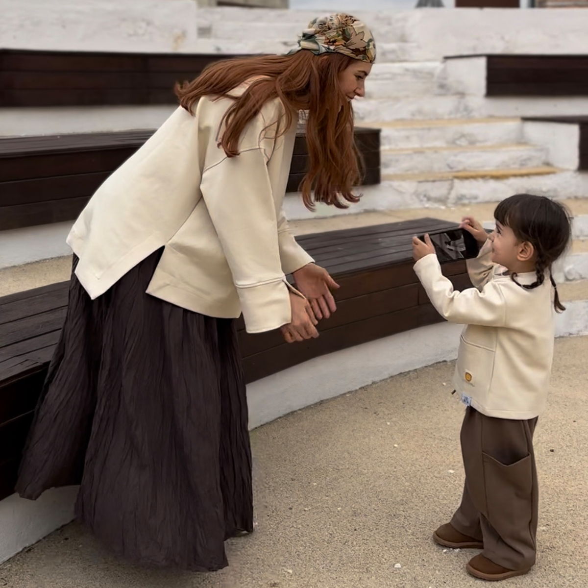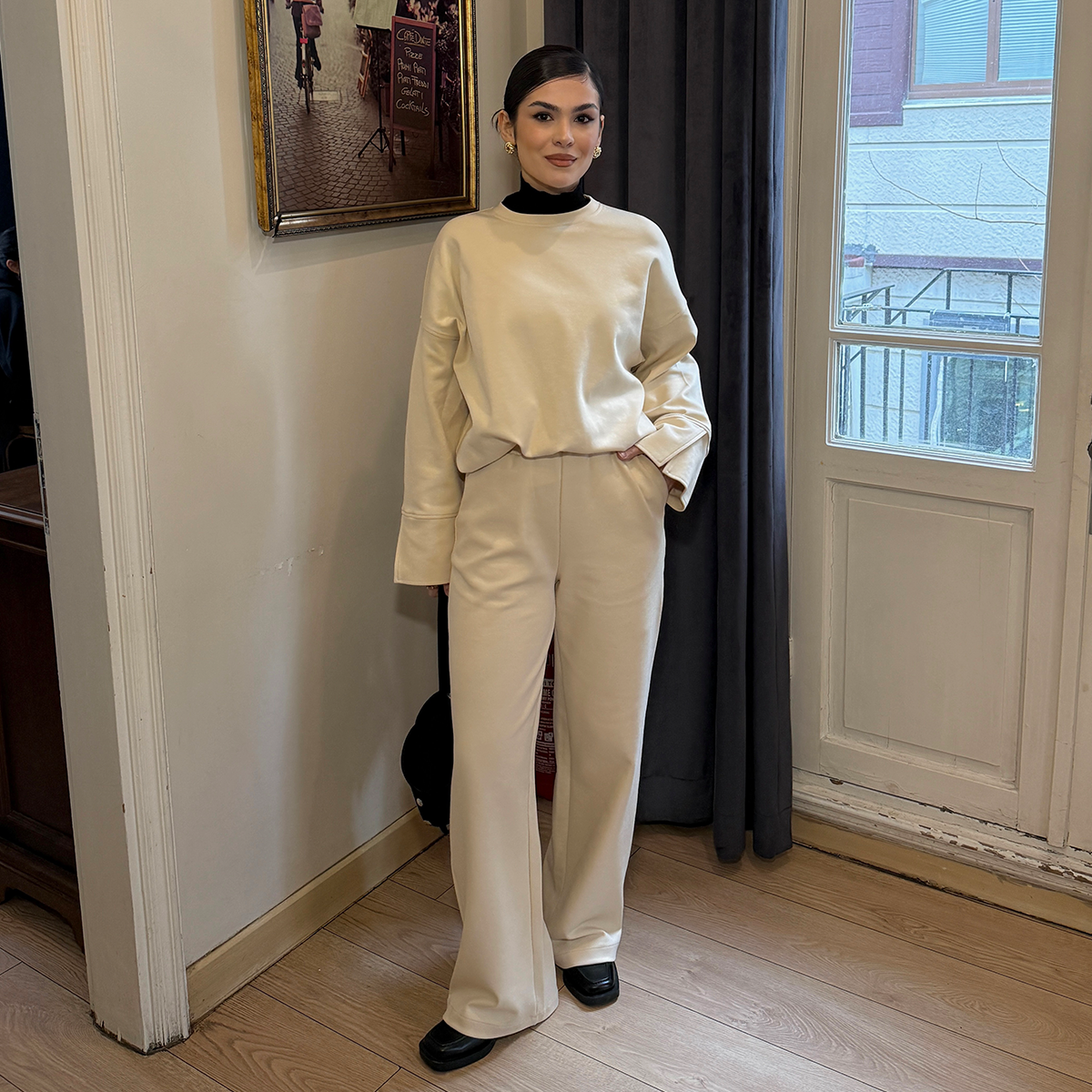 Kadın İnterlok Oversize Yelek Pantolon Takım Bej