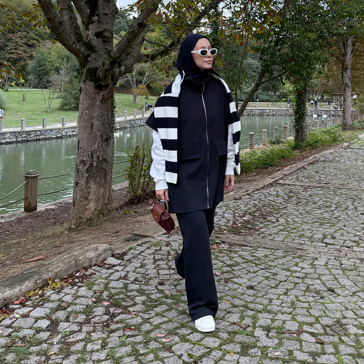Kadın İnterlok Oversize Yelek Pantolon Takım Lacivert