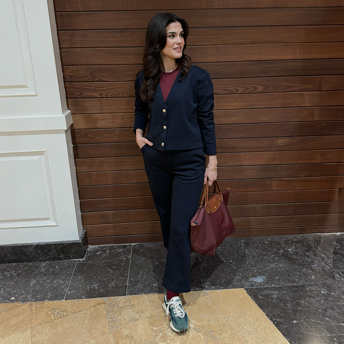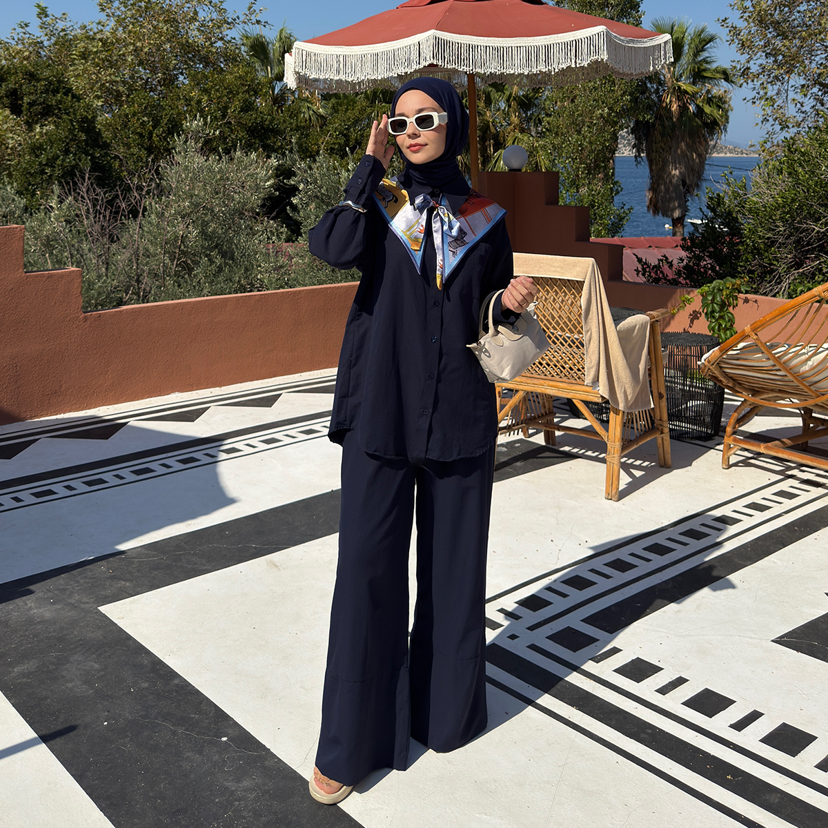 Kadın Poplin Gömlek Pantolon Takım Lacivert