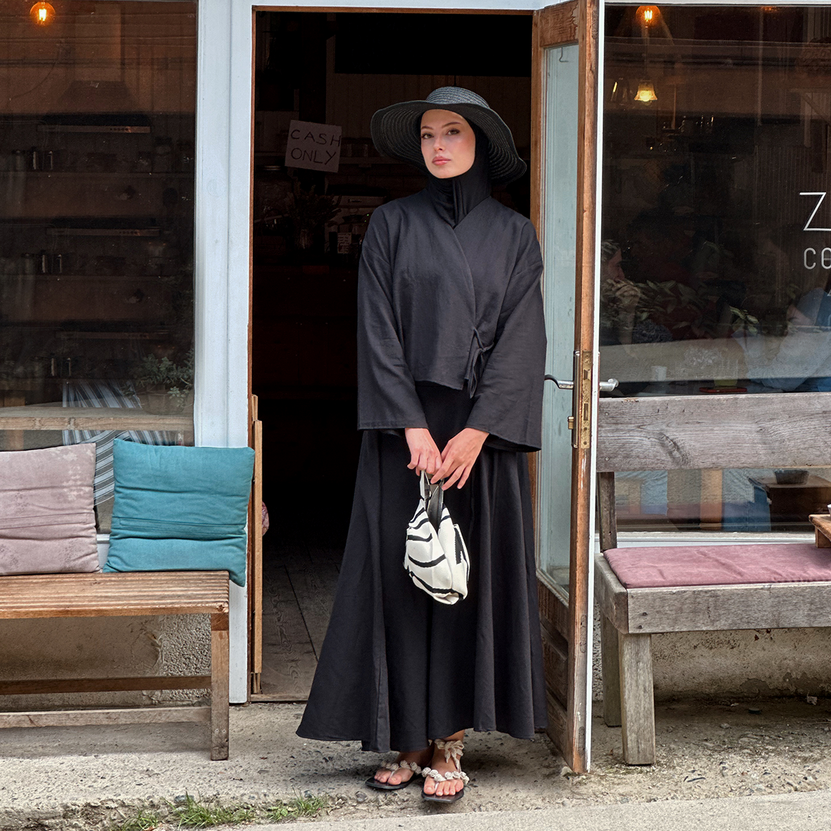 Kadın İnterlok Bol Paçalı Pantolon Siyah