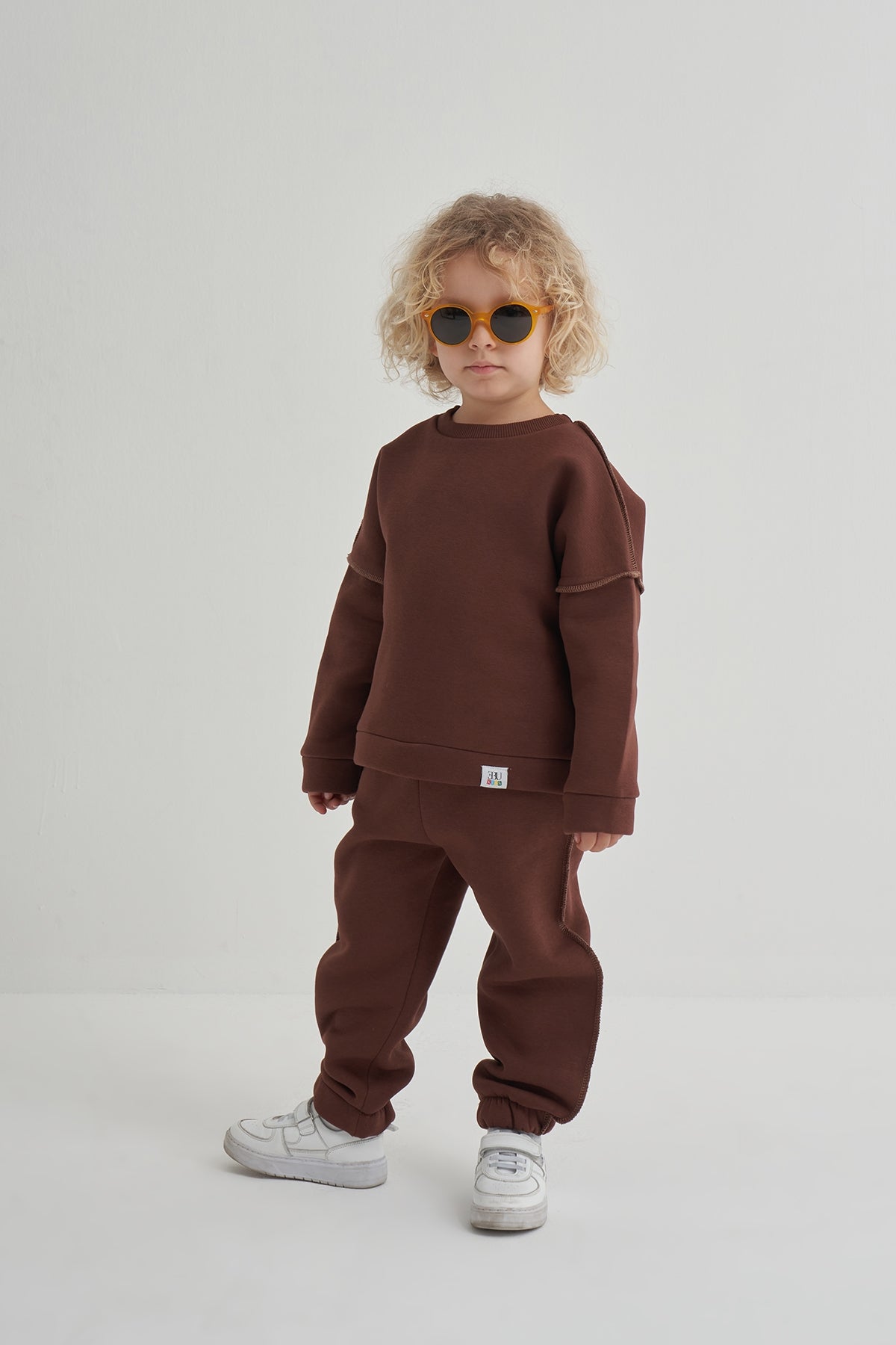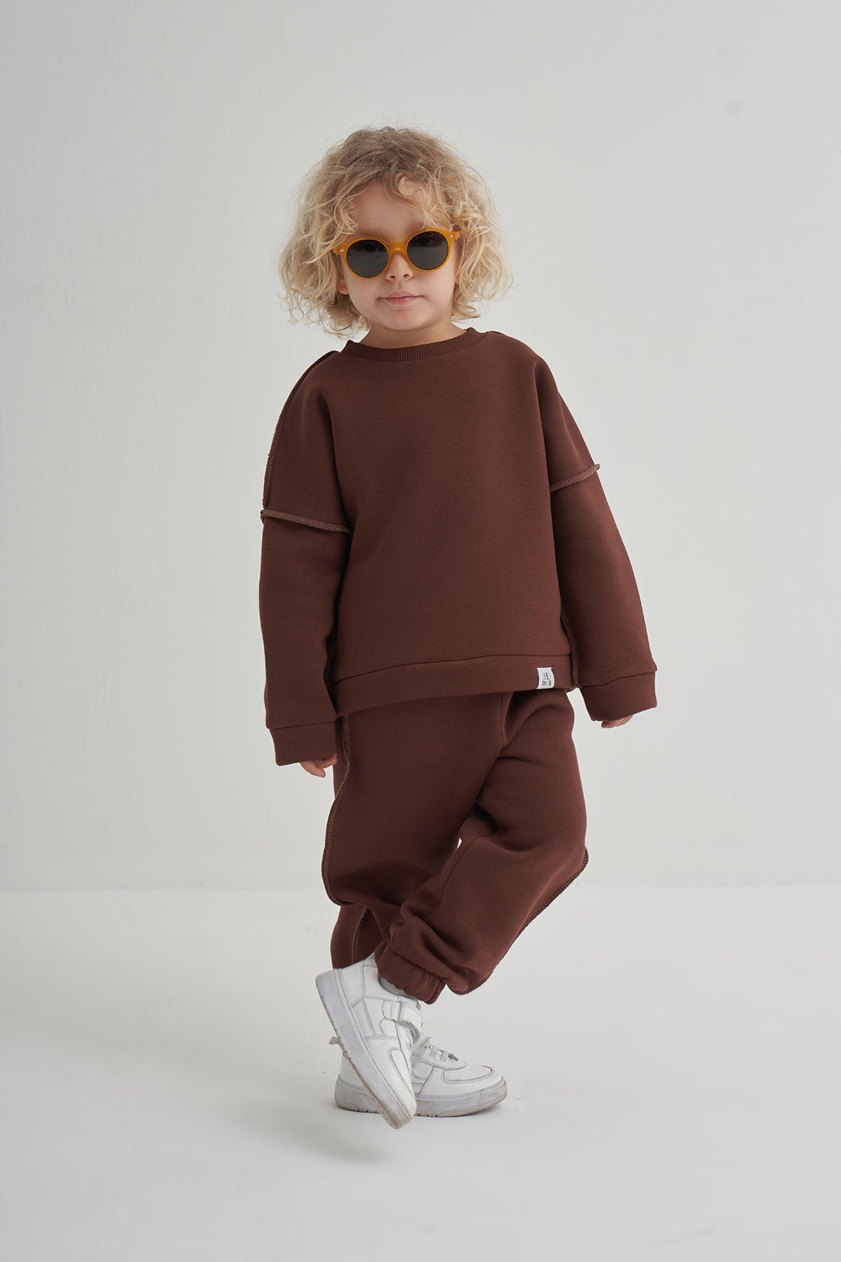 Unisex Çocuk İçi Polarlı İkili Takım Kahve