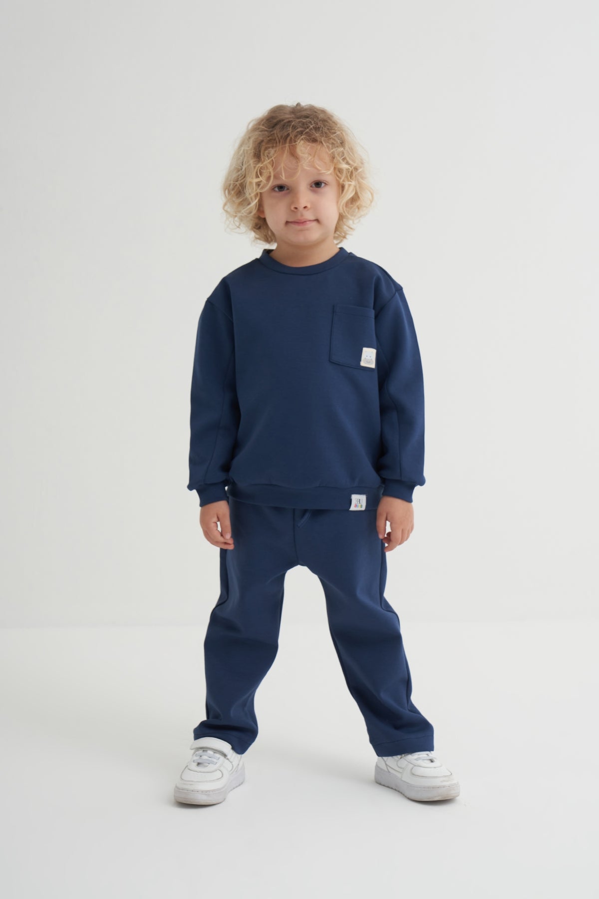 Çocuk ikili takım, esnek, yumuşak kumaşıyla gün boyu rahatlık sağlar.Oversize kesimi sayesinde hareket özgürlüğü sunar, cepli sweat detayı modern bir hava katar.