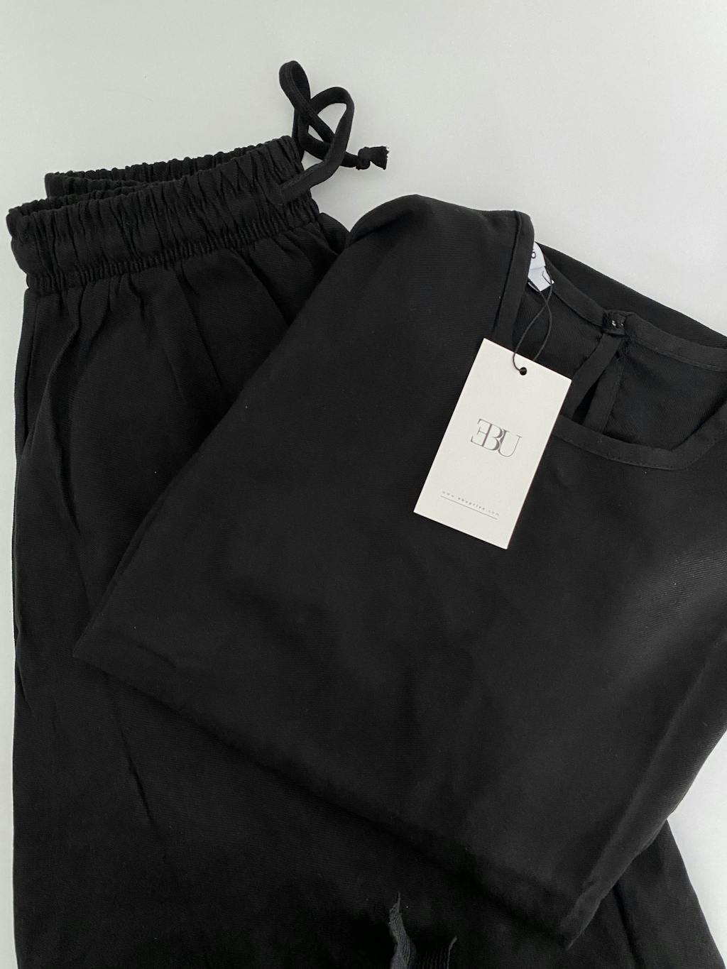 Bu şık ve modern takım, zarif bir görünüm sunarak her ortamda hava katmanızı sağlar. Siyah rengi, şıklığı ve asaleti bir araya getirirken, yumuşak kumaşı sayesinde gün boyu konforlu bir kullanım sunar. Üst kısmındaki peplum detayı, belinizi vurgulayarak feminen bir siluet yaratır. Etek kısmı ise akışkan yapısıyla hareket özgürlüğü tanır.