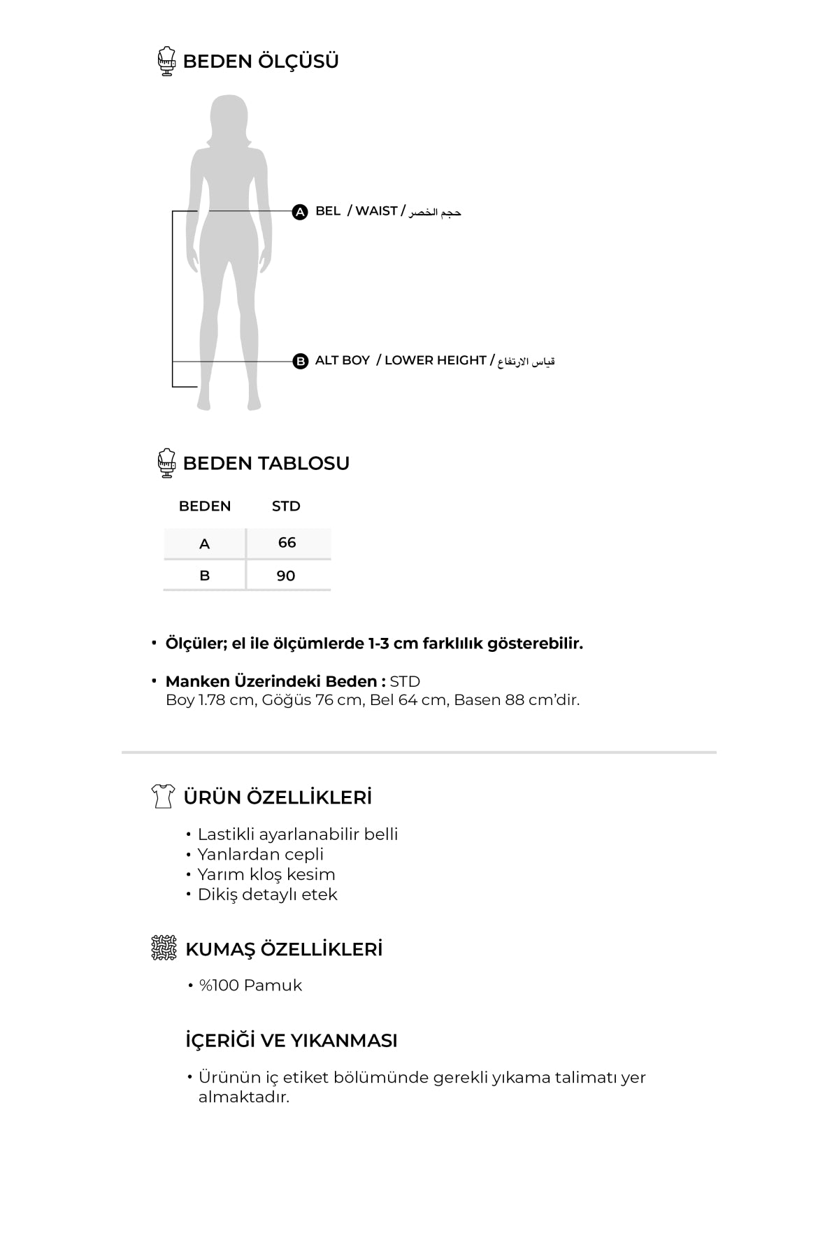 Ürünün iç etiket bölümünde gerekli yıkama talimatlı yer almaktadır.