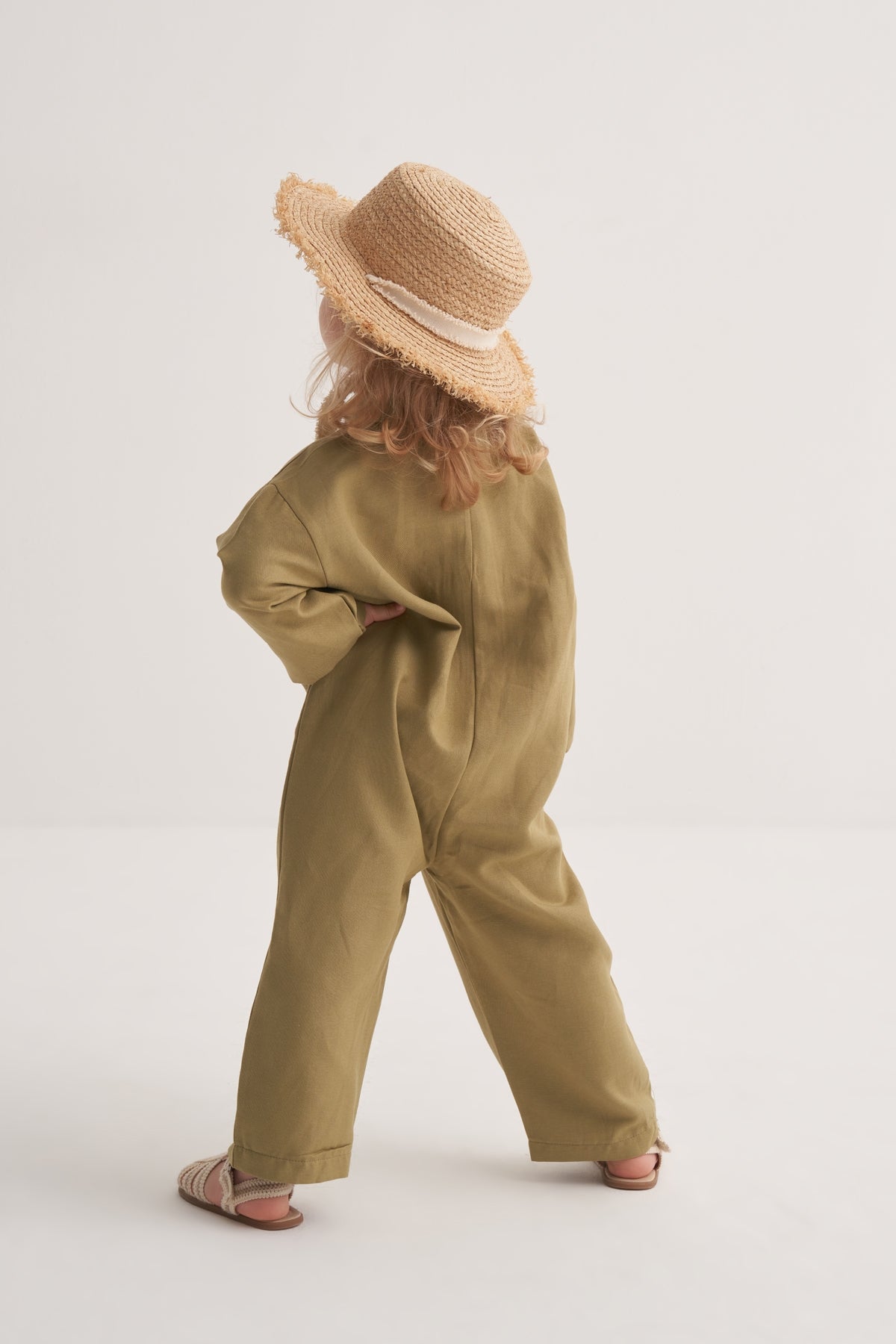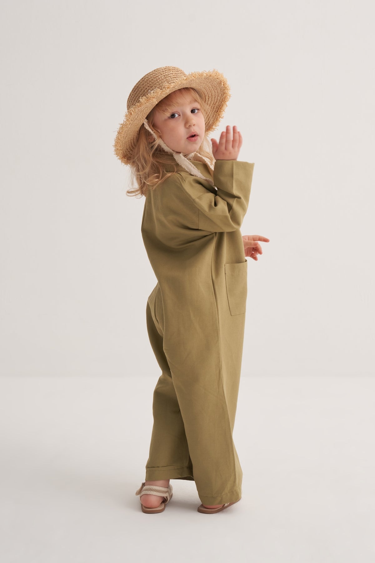 Unisex Çocuk Dökümlü Pamuklu Uzun Kollu Salopet Yeşil
